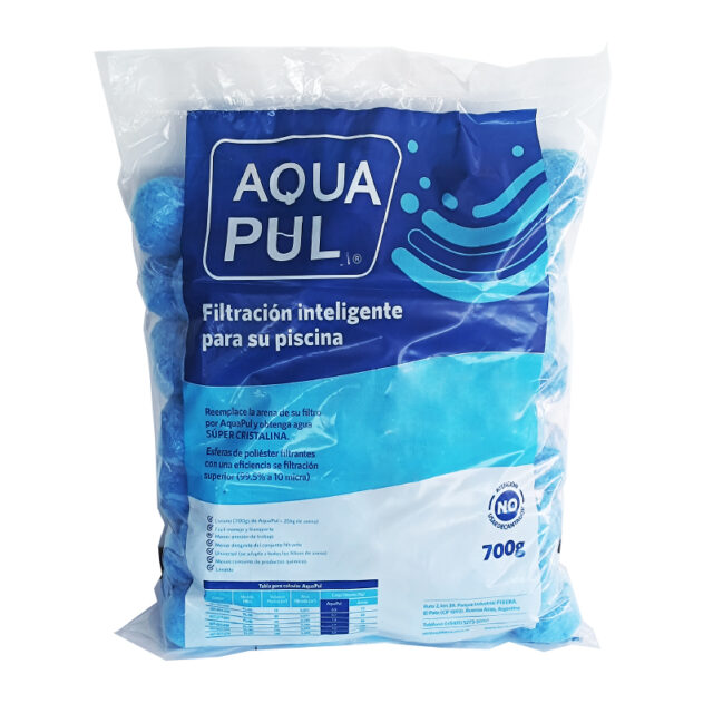 Aquapul es un innovador medio filtrante altamente eficiente para la purificación del agua en piscinas, spas, acuarios y otros sistemas de filtración de agua. El producto es una mezcla de diferentes fibras de polímero que cuentan con diferentes estructuras superficiales que forman una bola, capaz de adaptarse a todos los filtros.